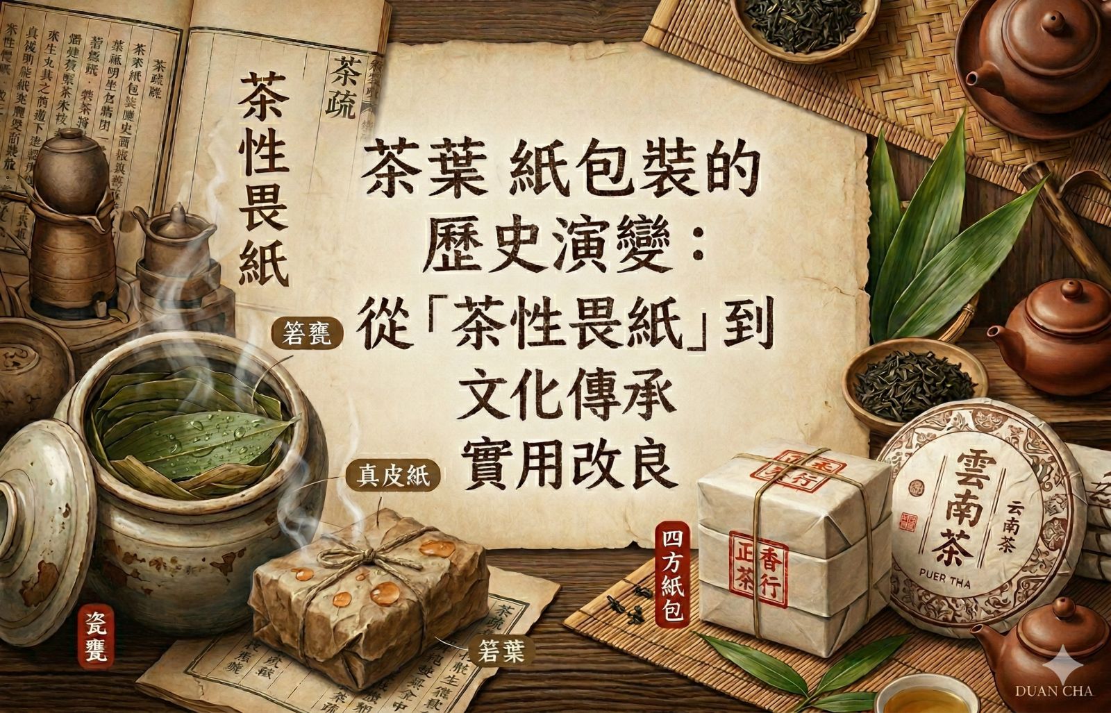 茶葉被譽為「靈草」,其生命力不僅存在於崇山峻嶺的生長過程中,更延續至採摘後的儲存與陳化。然而,茶葉極其纖細且具備強烈的吸附性,這使得「包裝」成為茶文化中不可或缺的一環。在長達千年的演進中,紙張與茶葉的關係經歷了從「相生」到「相剋」,最終達成「共榮」的複雜歷程。